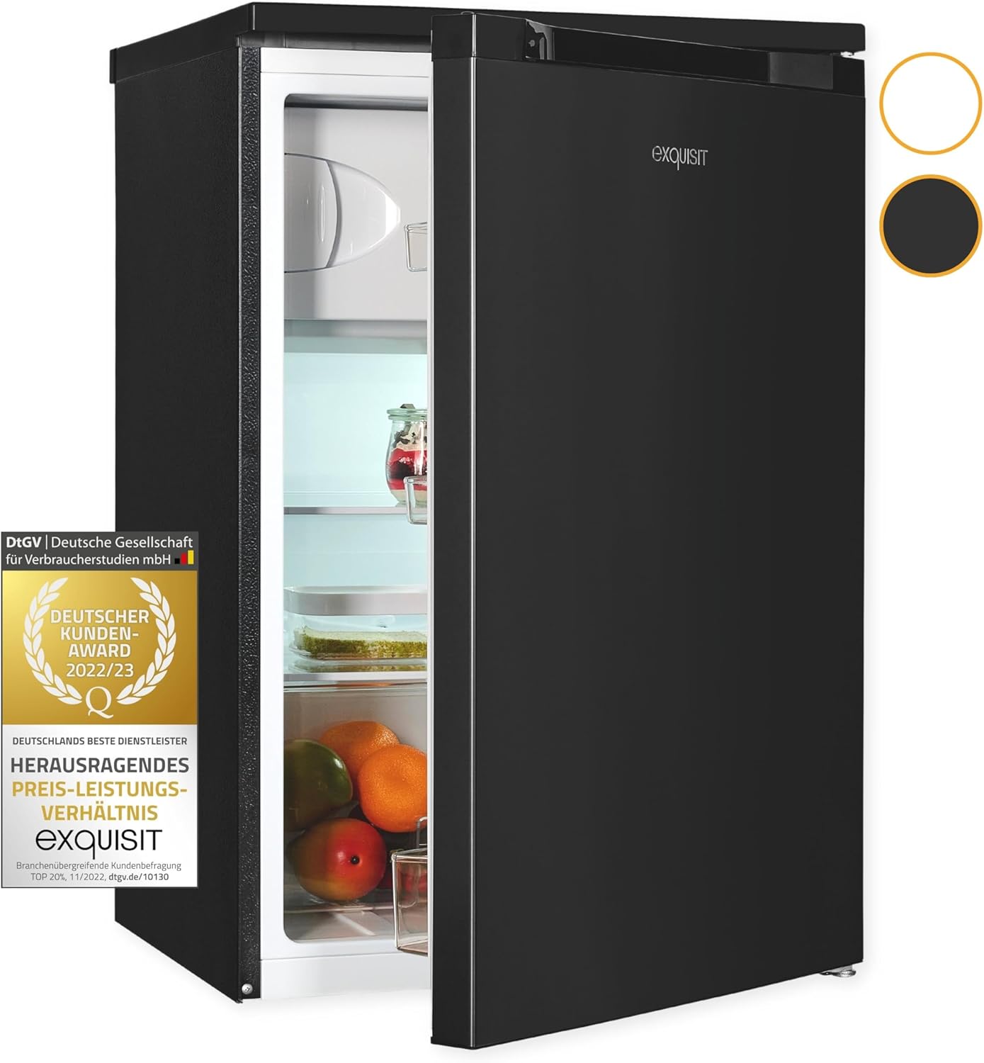 Exquisit Kühlschrank KS16-4-051C inoxlook-az | 107 L Volumen | Kühlschrank mit Gefrierfach freistehend | Gemüsefach